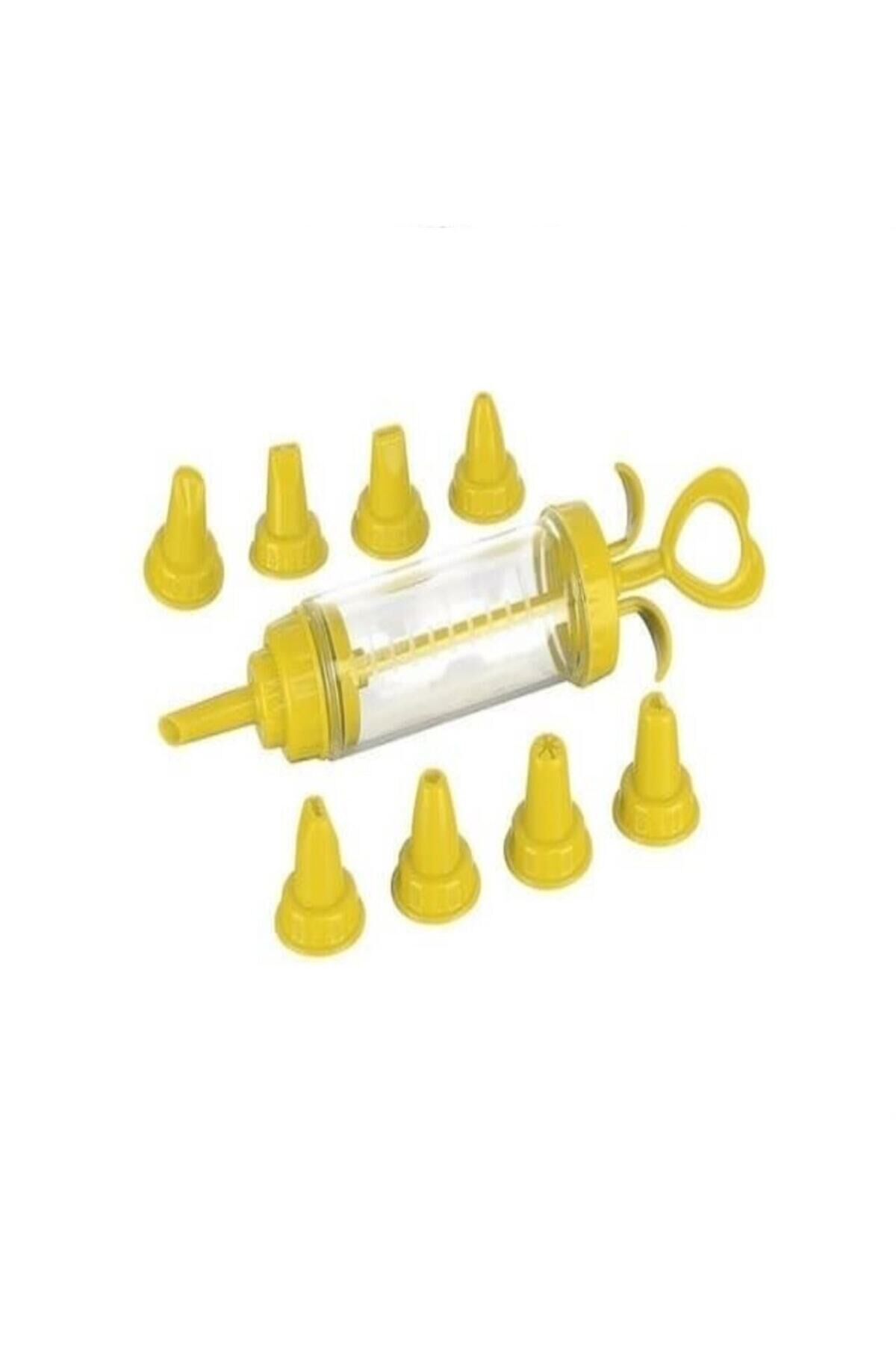 Dokuz Başlıklı Krema Pompası Pratik Krema Krem Şanti Sıkma Pompası Sarı