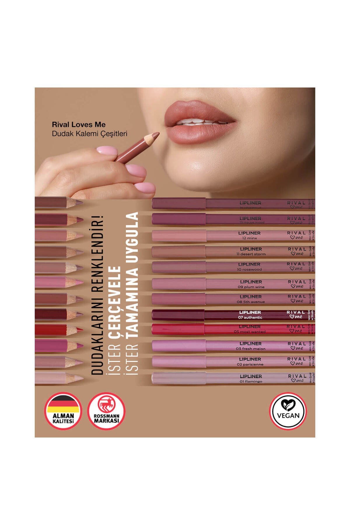 | İster dudaklarınızı çerçeveleyin, ister ruj gibi tüm dudağınıza uygulayın. Ruj veya dudak parlatıcısının taşmaması için yardımcıdır. |